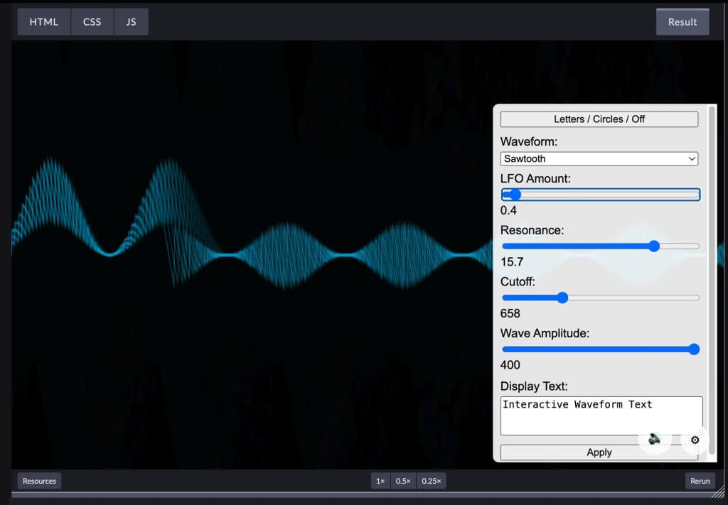 Prompt: “I need you to fix the sine, square, sawtooth, and triangle oscillators so that users can interact with them directly in this CodePen.