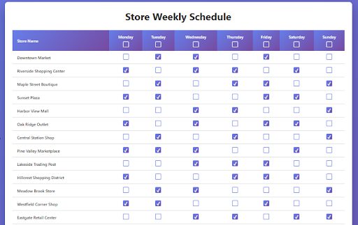 In the store scheduling feature, the first page generates checkboxes based on how many stores and days of the week there are. Right now there are 7 days, and about 550 stores. This takes the server about 40 seconds to render that page. Help me plan what strategies we could use to make the load time better.