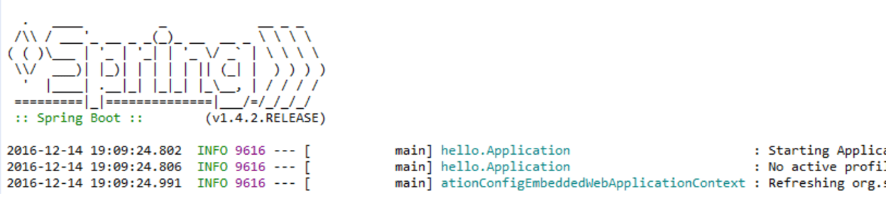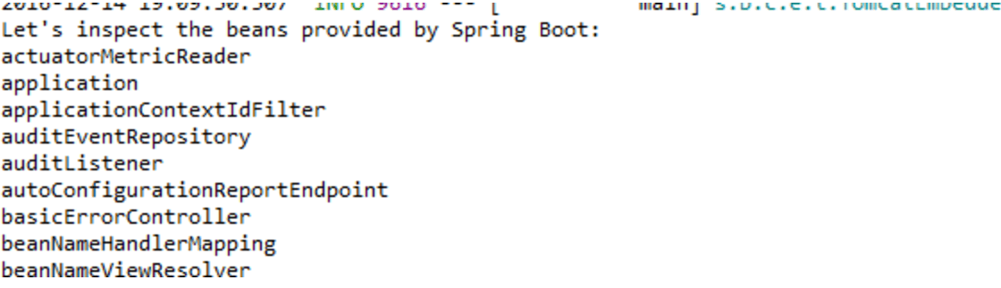 The output will show the normal Spring startup of the embedded server and then it will loop over all the beans and write them out for you!