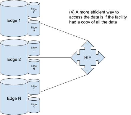 The primary drawback to this architecture is that each edge only knows about the data for the facility it is tied to. This data is already local if the patient visits a facility they’ve already been to. The power comes from being able to access data that was collected at other facilities in a performant manner. Seconds can mean a difference in the care for a patient, so needing to gather data from the edges of other facilities can be a nontrivial cost.